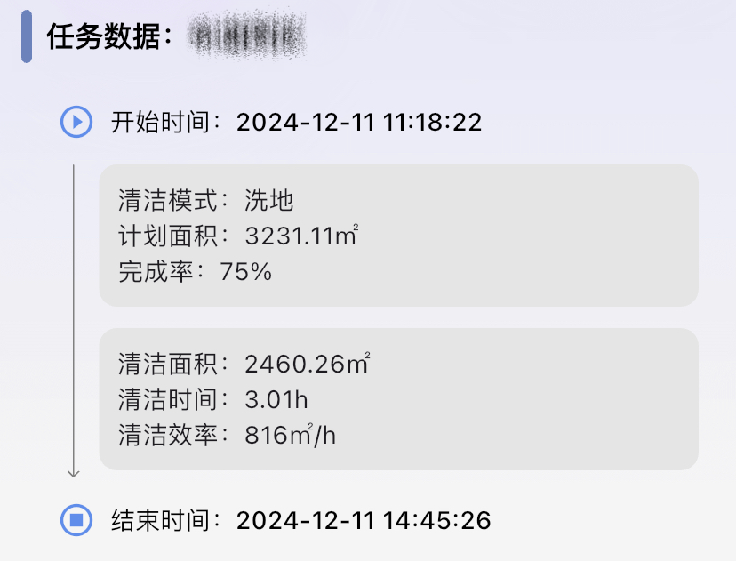 借助全新优化的任务报告功能,客户可以实时查看每次清洁任务的详细数据,包括耗电量、完成率、清洁时长等关键指标。无论是常规维护还是重点区域清洁,任务进度清晰透明,方便APP 使用者随时掌握设备运行情况,优化清洁管理决策。