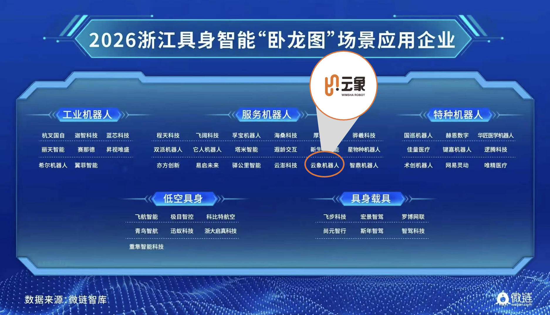 近日,云象机器人接连获得两项重要认可:获评2025年度杭州市“新雏鹰”企业,并入选“2026具身智能卧龙图”场景应用企业,在技术创新与产业落地两大维度实现同步突破。